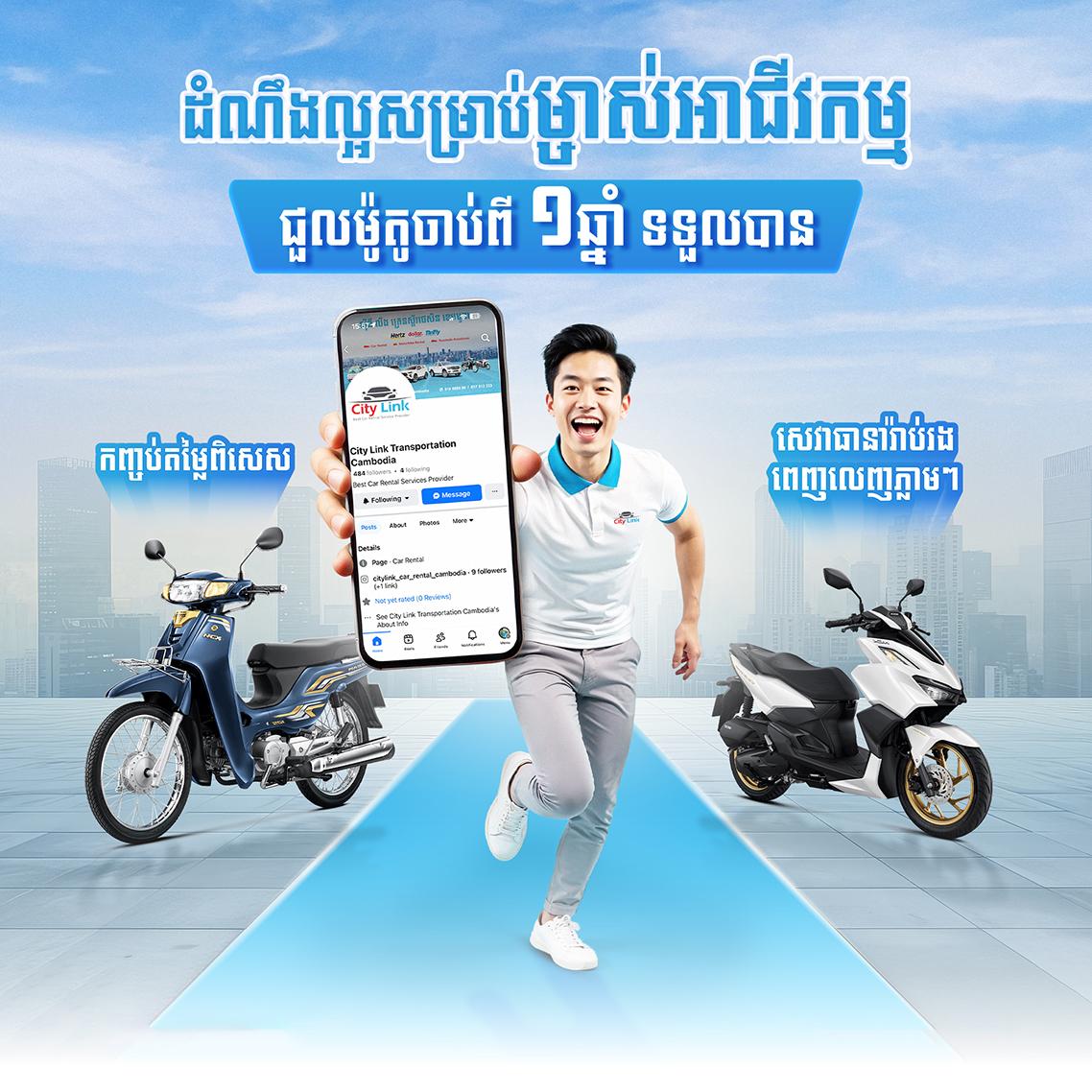 If you need to rent motorbikes for your employees for daily work operations, whether in Phnom Penh or the provinces, please remember to contact City Link Transportation (Cambodia), the first motorbike rental service provider in the Kingdom of Cambodia.